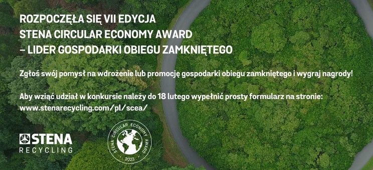 informujemy o rozpoczęciu VII edycji konkursu Stena Circular Economy Award – Lider Gospodarki Obiegu Zamkniętego organizowanego przez firmę Stena Recycling
