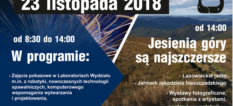 Zapraszamy do udziału w spotkaniu pn. „Dzień Bieszczadzki”, które odbędzie się w siedzibie naszego Wydziału, przy ul. Kwiatkowskiego 4 w Stalowej Woli, dnia 23 listopada 2018 roku organizowanego przez Wydział Mechaniczno – Technologiczny Politechniki Rzeszowskiej w Stalowej Woli oraz Stowarzyszenie „Natchnieni Bieszczadem” w Cisnej.