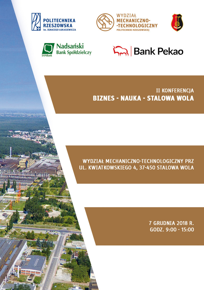 mamy przyjemność zaprosić na II Konferencję organizowaną wspólnie przez Wydział Mechaniczno-Technologiczny Politechniki Rzeszowskiej w Stalowej Woli, Miasto Stalowa Wola, Nadsański Bank Spółdzielczy oraz Bank Pekao SA: