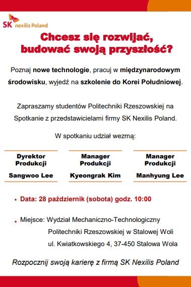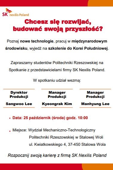 SK Nexilis to nowa, koreańska firma w naszym regionie, w której nasi inżynierowie z pewnością mogą znaleźć szansę na rozwój, zdobycie cennego doświadczenia i świetną pracę. Firma inwestuje w nowych inżynierów, również przez szkolenia w samej Korei.