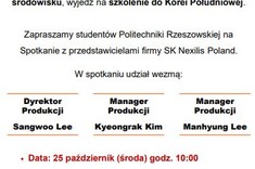 SK Nexilis Poland zaprasza studentów WMT na spotkanie ze swoimi przedstawicielami. Spotkanie dla studentów stacjonarnych odbędzie się 25.10, a 28.10 dla studentów studiów niestacjonarnych.